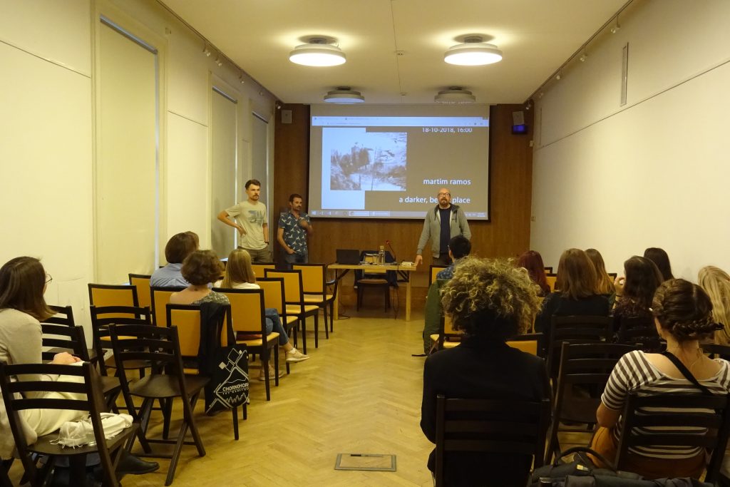 У своїй мистецькій практиці Мартім Рамос часто вдається до використання та запозичення візуальних матеріалів і образів для створення власних продуктів. Протягом резиденції у вересні і жовтні художник досліджував матеріали Міського медіаархіву Центру для створення псевдодокументального фільму "О, темний, чудовий світ" (A darker, better place) на основі кадрів з архіву Львівського телебачення.
