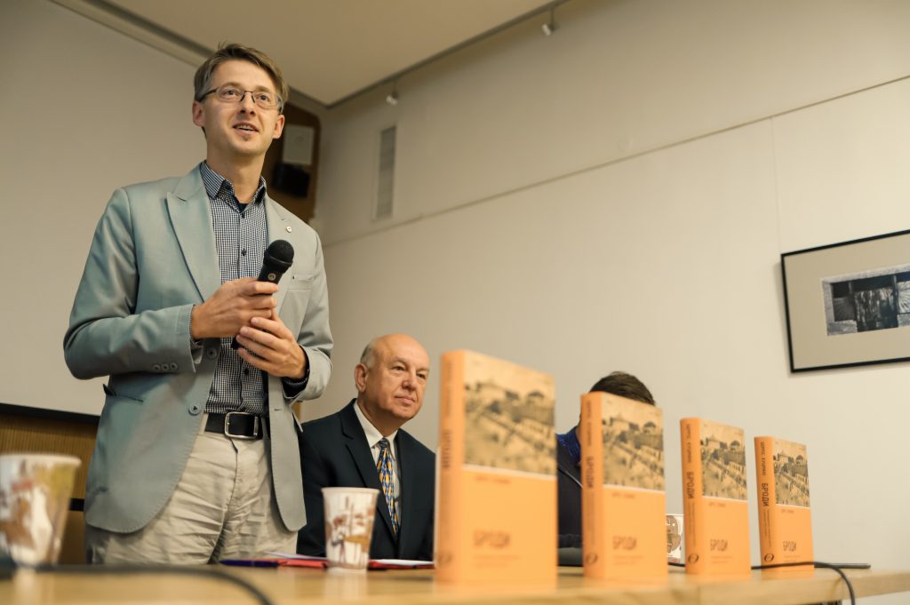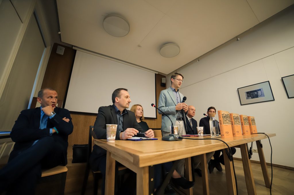 Учасники презентації: Берріс Куцмані (Інститут нової та новітньої історії Австрійської академії наук / Віденський університет), Михайло Комарницький (видавництво "Літопис"), Мар'ян Мудрий (ЛНУ ім. Івана Франка), Мар'яна Максим'як (Центр міської історії / Літературний центр імені Аґнона).