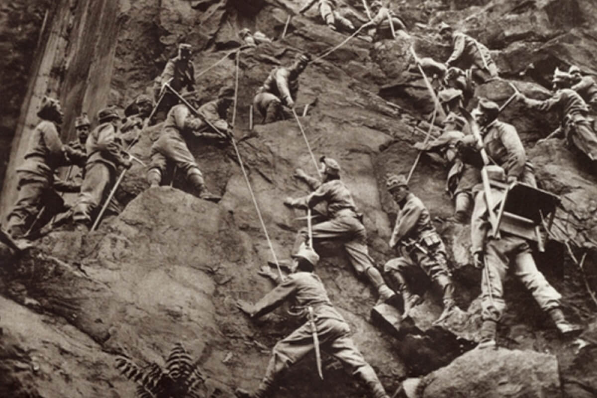 Верхнє: Австрійські війська в Альпах у червні 1915 року.