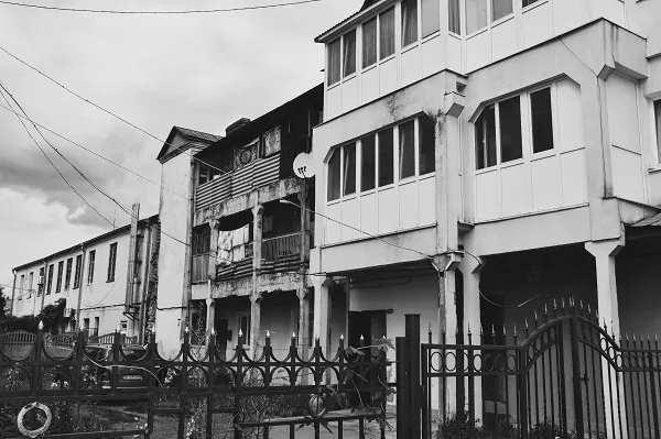 Верхнє: сучасний вигляд одного з будинків, що розміщувався на території здолбунівського гетто / Здолбунів, 08.7.2024 / фото Марини Долганової