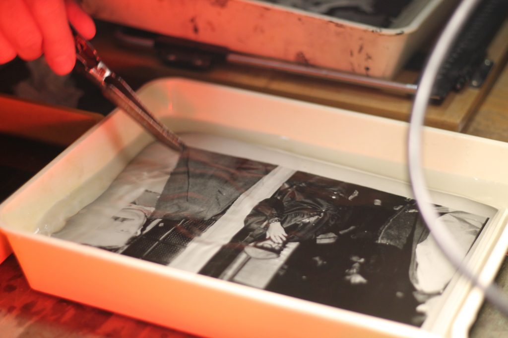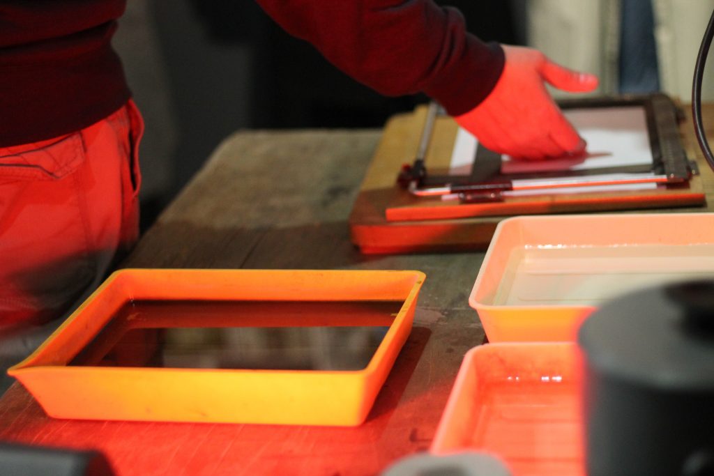 Учасники ознайомляться з основами ручного фотопроцесу та надрукують відбитки з негативів Віля Фургала.