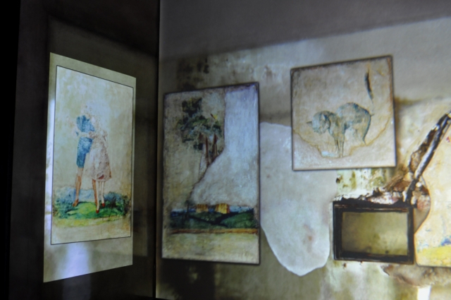 Верхнє: Прохідна картинна шафа з фресками Бруно Шульца - Мобільна інсталяція в оригінальному масштабі (Художній керівник: Бенджамін Гейсслер)