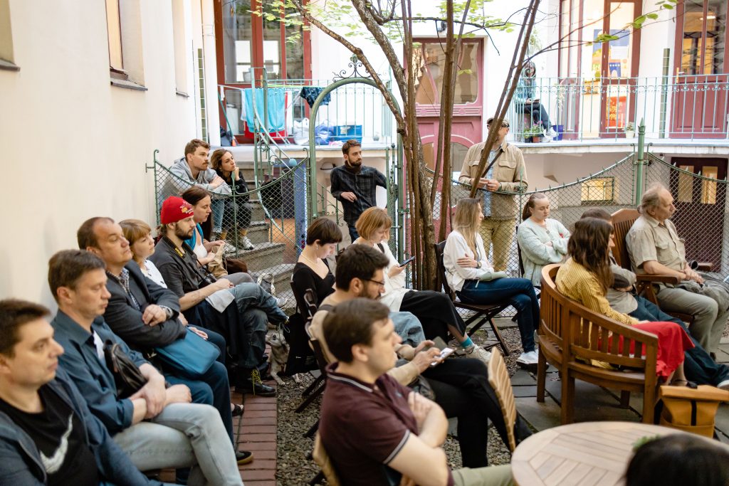 Розмова є частиною публічної програми "Місто транзитів: розмови у дворику", яка віднаходить переплетення мереж у місті, яке переживає різні досвіди війни тоді і сьогодні.