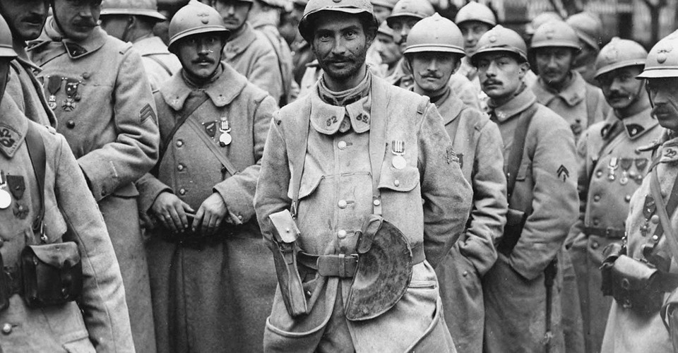 Сover Image: French soldiers stand in a relaxed group wearing medals / National Library of Scotland