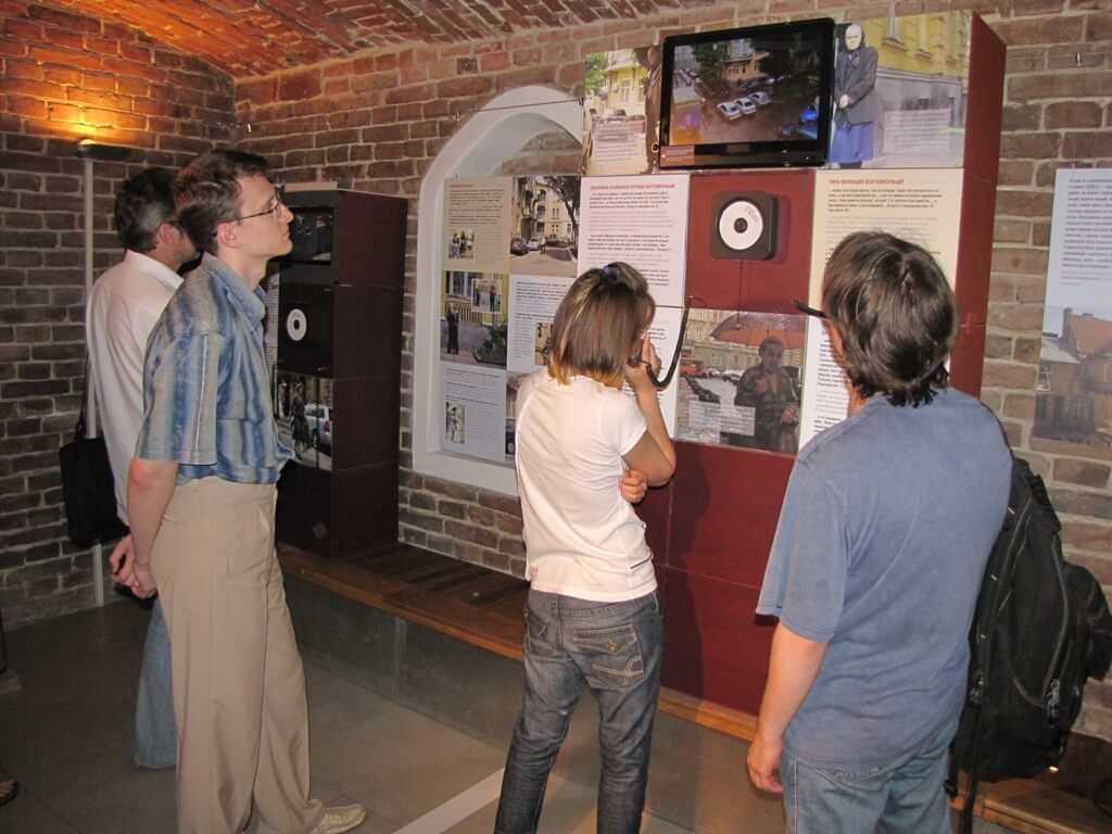 "Doors Open" has been accompanied by a second exhibit, which adds a Ukrainian dimension to the Swiss project while concentrating on a strictly local case in the city of Lviv. It was the micro-study of "Vulycja Bohomoltsia" (Bohomoltsia Street), a product of the Center’s own research activity over the past years. Descriptive texts, historical images and audio-interviews with current inhabitants combine to tell the story of the historically interesting and architecturally remarkable street where the Center for Urban History of East-Central Europe is located.