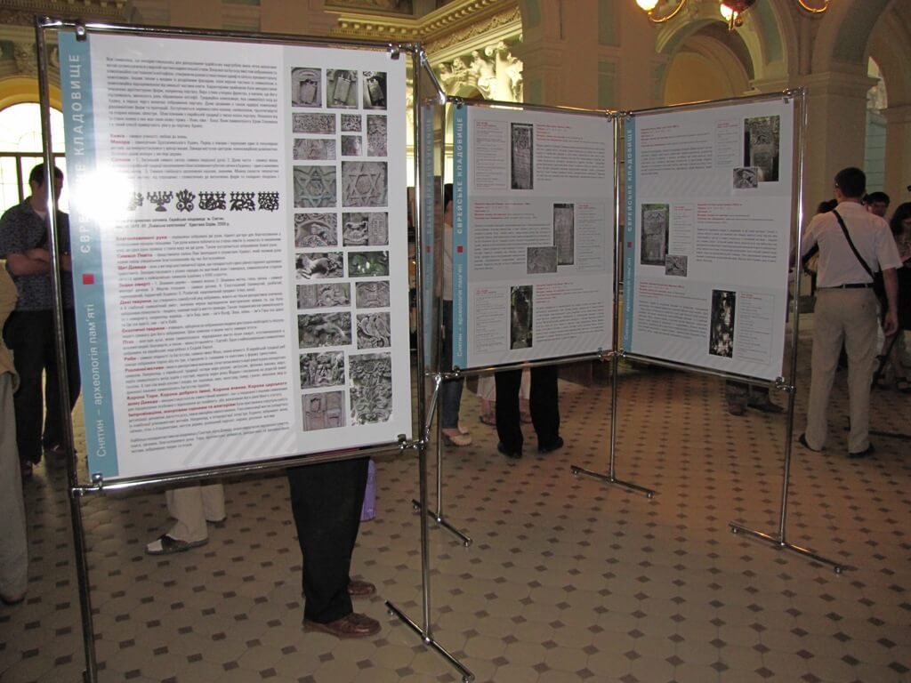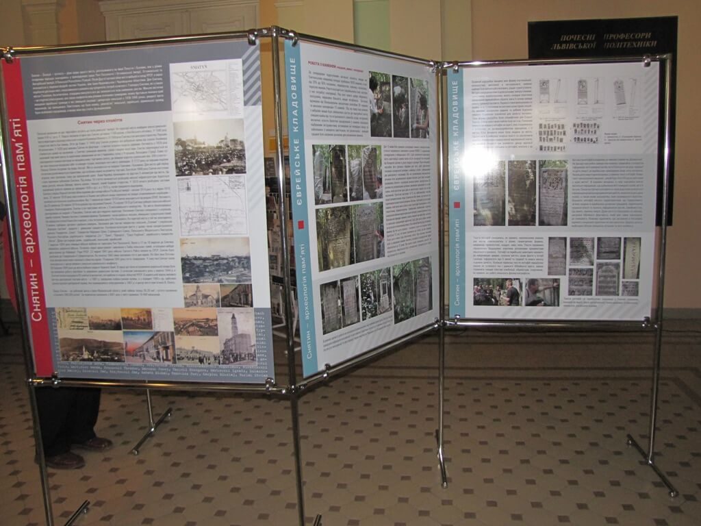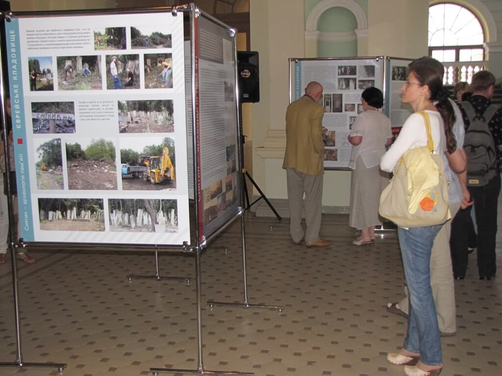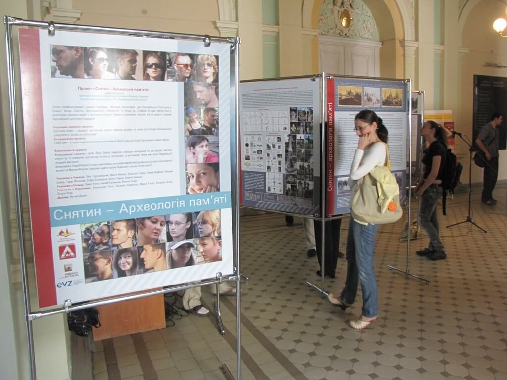 The Exhibition "Sniatyn – The Archeology of Memory" described the results of a project that systematized and documented Christian and Jewish graveyards in the city of Sniatyn between 25 July - 10 August 2009 by students from the Institute of Architecture and students from Poland and Germany. For two weeks, students from the institute, along with their Polish and German colleagues, systematized and described two city cemeteries: Christian and Jewish. The goal of the project was to enlist students in practical work in preserving and processing memorials, and to bring together young people from various countries. The project was also meant to bring to the attention of Sniatyn’s residents their city’s multi-ethnic and multi-religious heritage. This project was also meant to help increase the quality of education, adding to the program of academic auditory learning during summer educational programs. This anticipated executing certain practical assignments in architectural measurements of tombstone memorials in graveyards.