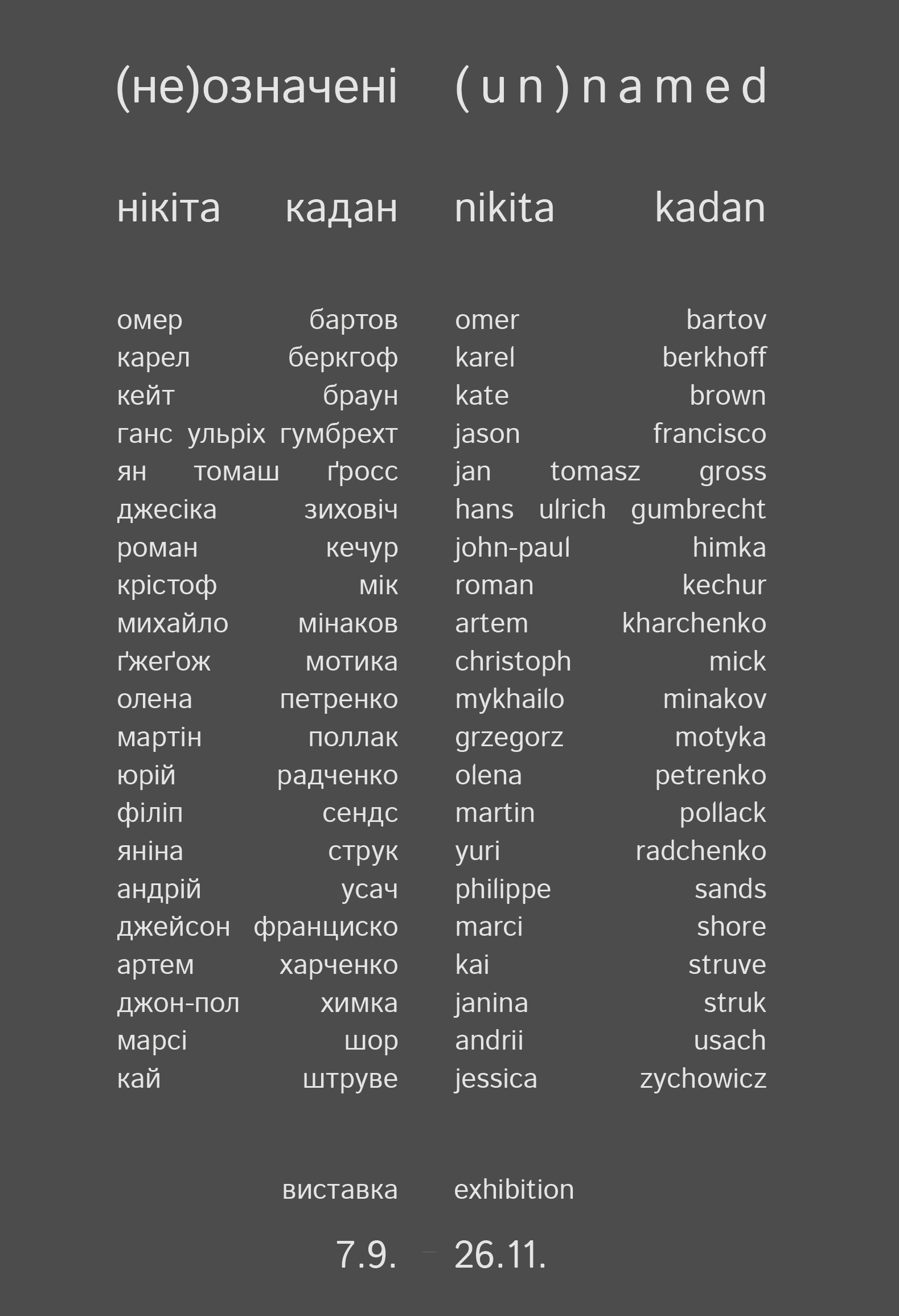 The 20th century heritage includes, among others, thousands of unmarked graves and millions of the murdered bodies. Their names often remain unknown. Even when they are known, they are mostly staying within family stories. Unnamed in numbers, they become symbols and objects of memories, policies, and studies. The exhibition the "(un)named" aims to provide an impetus for broader reflection and the process of processing traumatic and unspoken topics about our past.