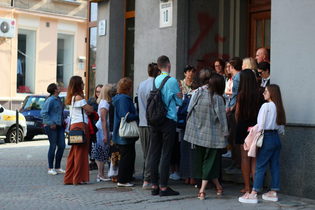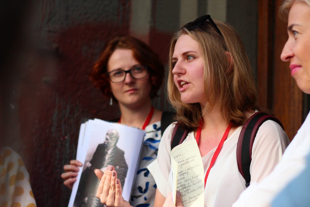 Authors of the walk: coordinator of workshop "(Re)Making a Story" Natalia Otrishchenko (researcher at the Center for Urban History), and the workshop participant Olena Herechko (student at "Lviv Polytechnics" NU), Viktoriia Panas (assistant at public history programs of the Center for Urban History), Maria Pishchyk (student at Ukrainian Catholic University).