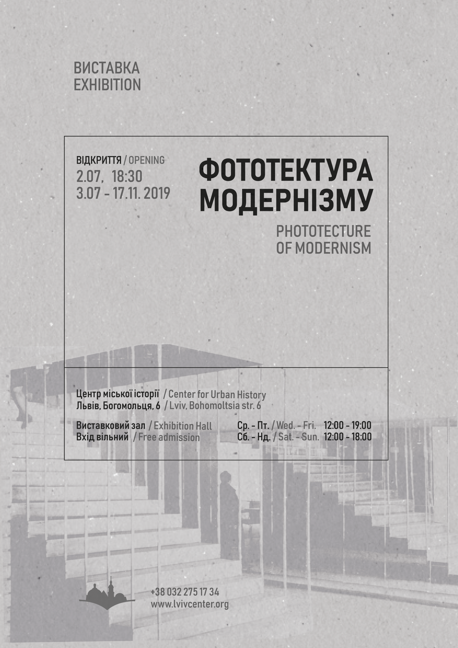 Коли емоційна відстань є малою, а об'єкт — ще невідомим, мистецьке суб'єктивне переосмислення дозволяє показати те, що ховається за простими, на перший погляд, архітектурними формами. Виставка "Фототектура модернізму" є намаганням передати суб'єктивний досвід архітектури пізнього львівського модернізму вісьмома авторами з різними професійними ідентичностями, пов'язаними з архітектурою, культурою, журналістикою, театром, фотографією тощо. Об'єктами їхніх мистецьких рефлексій стали реалізовані проекти подружжя архітекторів Анатолія і Музи Консулових, які жили і працювали у Львові після Другої світової війни. Спроектовані ними архітектурні об'єкти є важливими для міста і добре знайомими для львів'ян. Виставка поєднує різні, і часто контрастні, інтерпретації архітектури за допомогою візуального і звукового ряду.