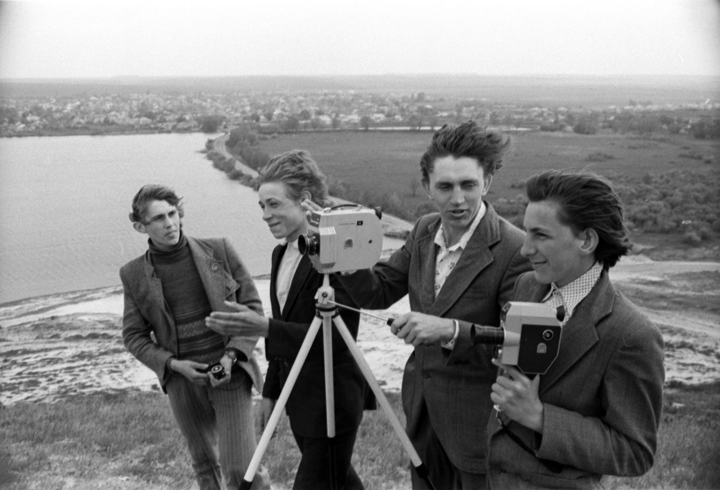 Верхнє: Члени кіногуртка будинку культури у Новоалександрівці на зйомках фільму, 1981 рік // Центральний державний аудіовізуальний та електронний архів // Міський медіаархів Центру міської історії
