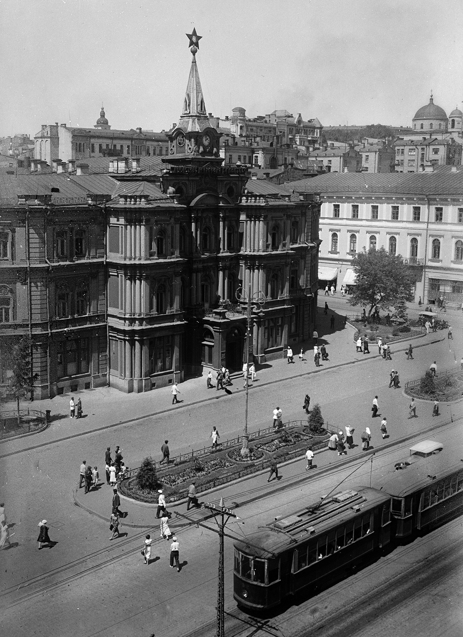 Верхнє: Колишній будинок Київської міської думи (знищений у 1941 році), 1920—1930 роки / ЦДКФФА України ім. Г. С. Пшеничного