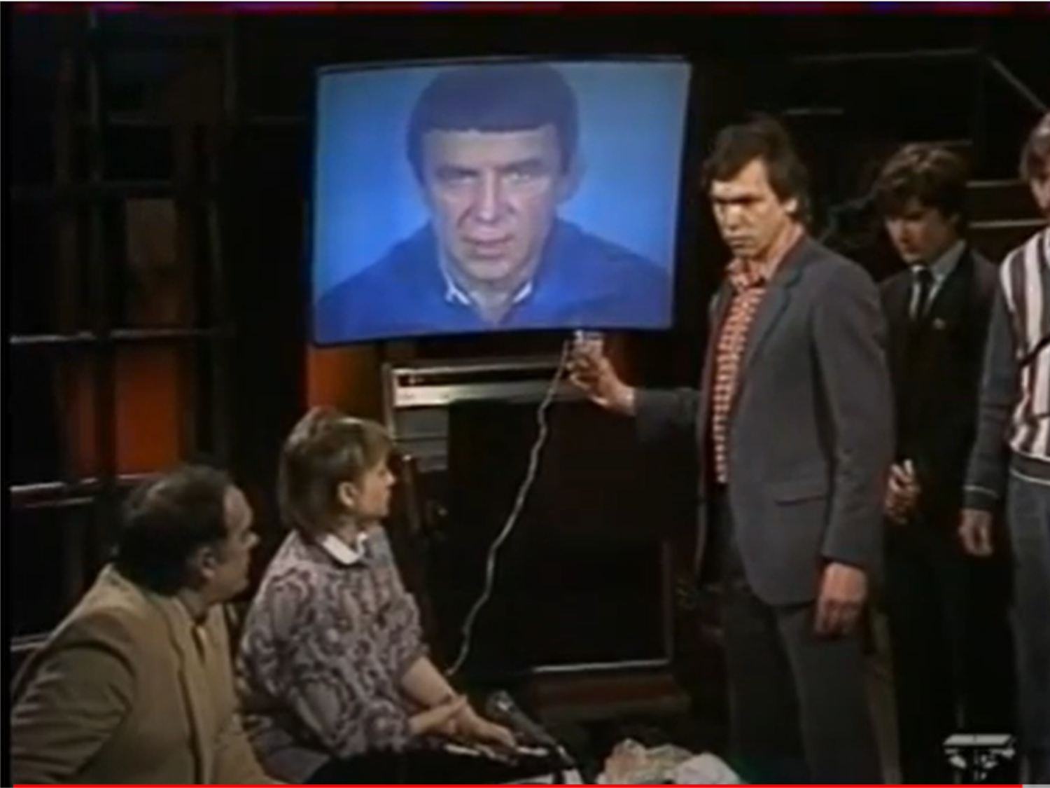 Верхнє: телеміст Київ — Москва, учасник у московській студії тримає склянку з окропом і не відчуває болю, будучи в трансі під впливом телепогляду Кашпіровського з Києва